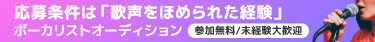 福岡で対面で受けられる幅広い年齢層向けオーディション。書類審査なしで音楽経験不問。オンライン参加もOK。合格後は有名プロデューサーによる楽曲提供やプロの指導が受けられ、ライブ出演機会も。仕事と両立しながら本格的な音楽活動を目指せる点が魅力。 | |
